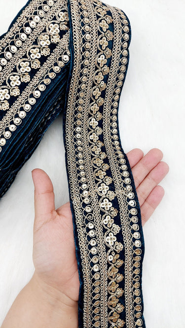 This listing is for a lovely Velvet Fabric Saree Border Trim Floral Embroidered Sequins Trim Indian Sari Border, Sequin Trimming, Sequinned Lace, Trim By 9 Yards.
