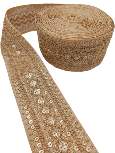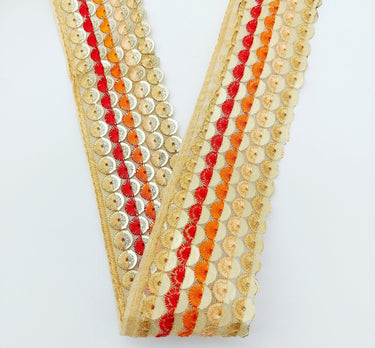 This listing is for Art Silk Trim Gold Embroidered Sequins Trim, Decorative Trim, Indian Sari Border