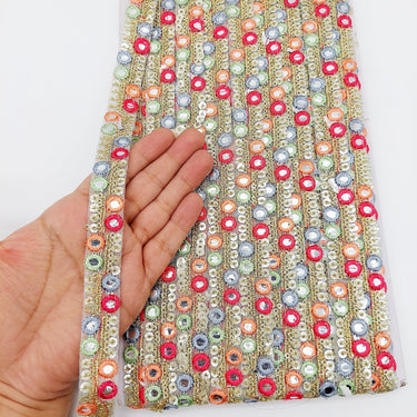 This listing is for a stunning Multicoloured Embroidered Trim Sequins Trim Decorative Lace Sari Border Costume Ribbon Crafting Sewing Tape.