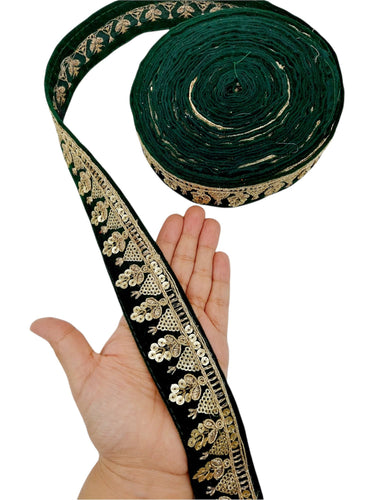 This listing is for a stunning Dark Green Gold Embroidered Lace Trim Sequins Trim 9 Yard Decorative Sari Border Costume Ribbon Crafting Sewing Tape.