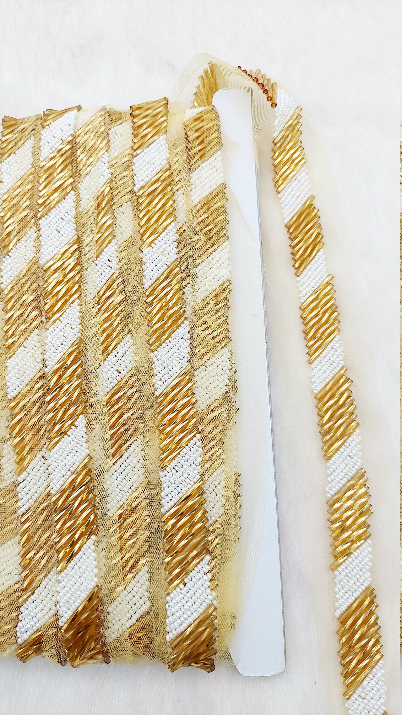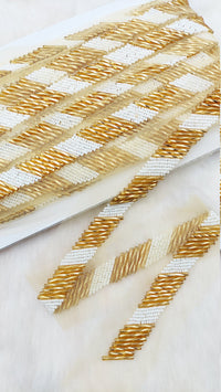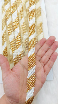 This listing is for a stunning Gold Zardozi Hand Embroidered Cutwork Lace Trim Beaded with Ivory Seed Beads, Wedding Saree Border Trim, Indian Trim, Wedding Trim, Bridal. This is a very unique trim and would make any creation stand out.