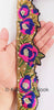 The embroidery on this trim is called Zardozi, an exclusive type of embroidery that is done by hand. Zardozi comes from two Persian words: zar or zarin meaning 'gold', and dozi meaning 'sewing'. Zardozi is a type of heavy and elaborate metal embroidery on a silk, satin, or velvet fabric base.