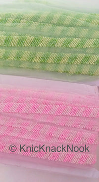 Decorative Green / Pink Beaded Net Lace Trim, Seed Beads, Beaded Trim