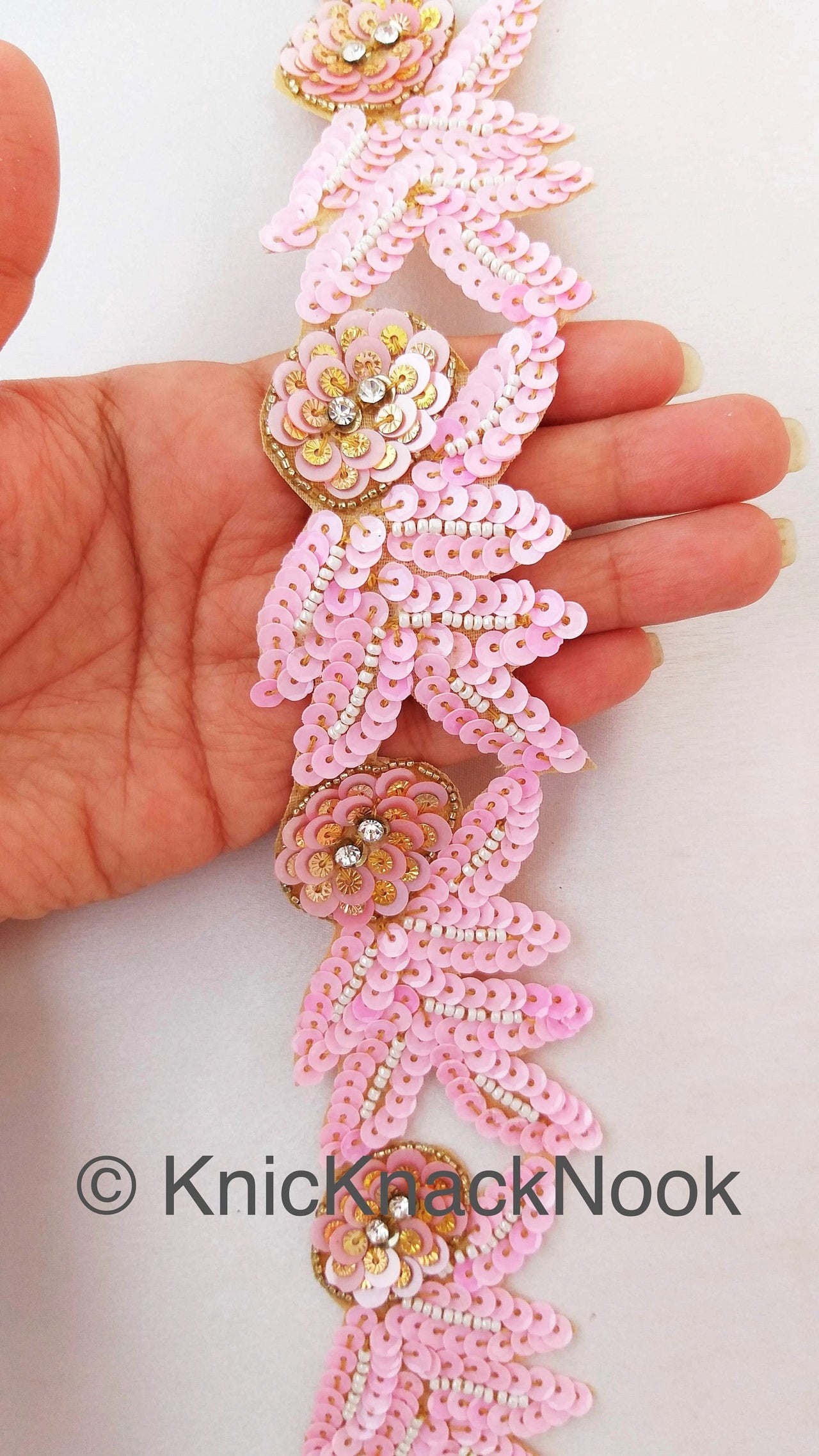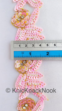 Pink And Gold Sequins Trim With Diamante Beads, Floral Trims, Trimming