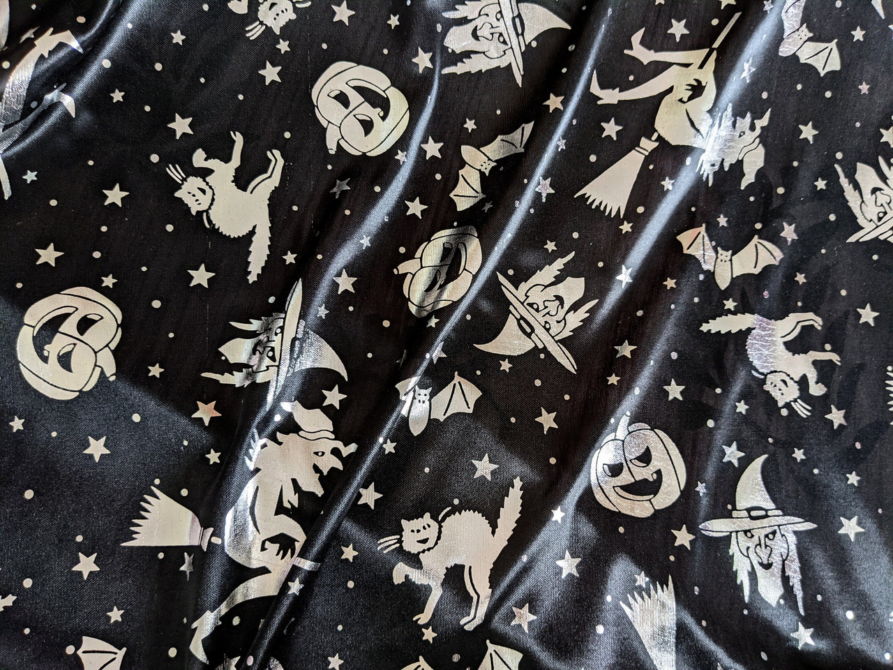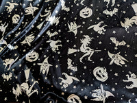 Black And Silver Halloween Pumpkin, Witch, Bats Foil Fabric