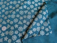 Bottle Green And Gold Cotton Fabric Christmas Snowflakes Xmas Tree Star Fabric, Festive Fabric, Holiday Fabric