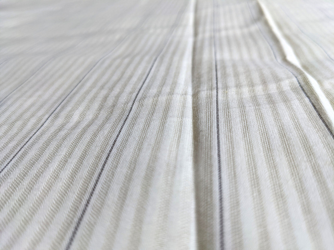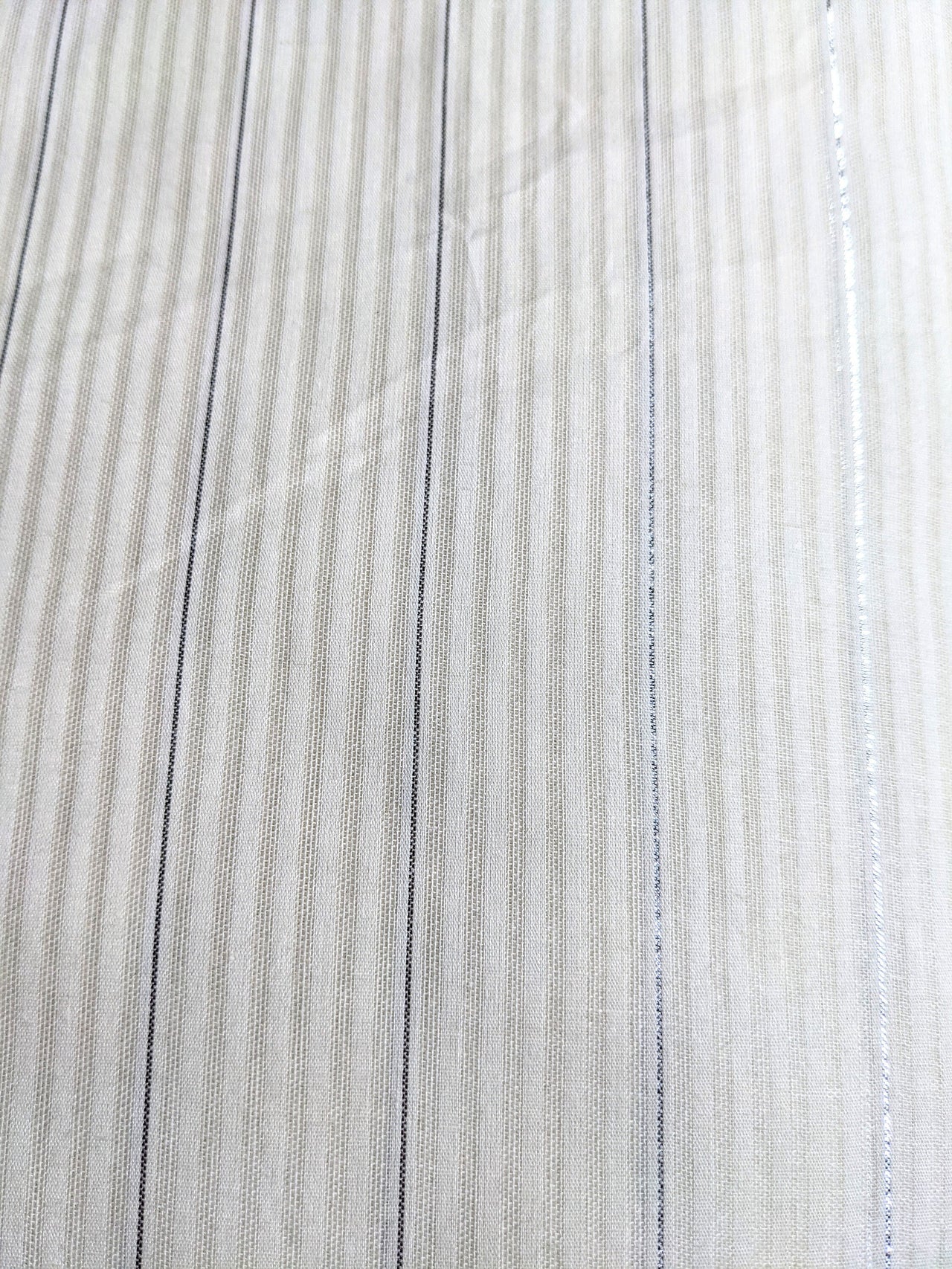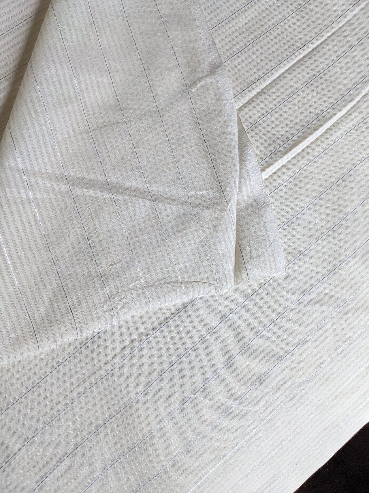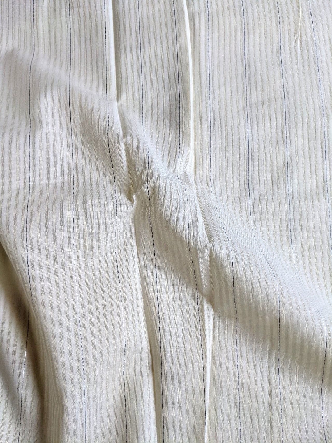 Cream Cotton Silver Stripes Fabric, Striped Handloom Fabric, Quilting Fabric