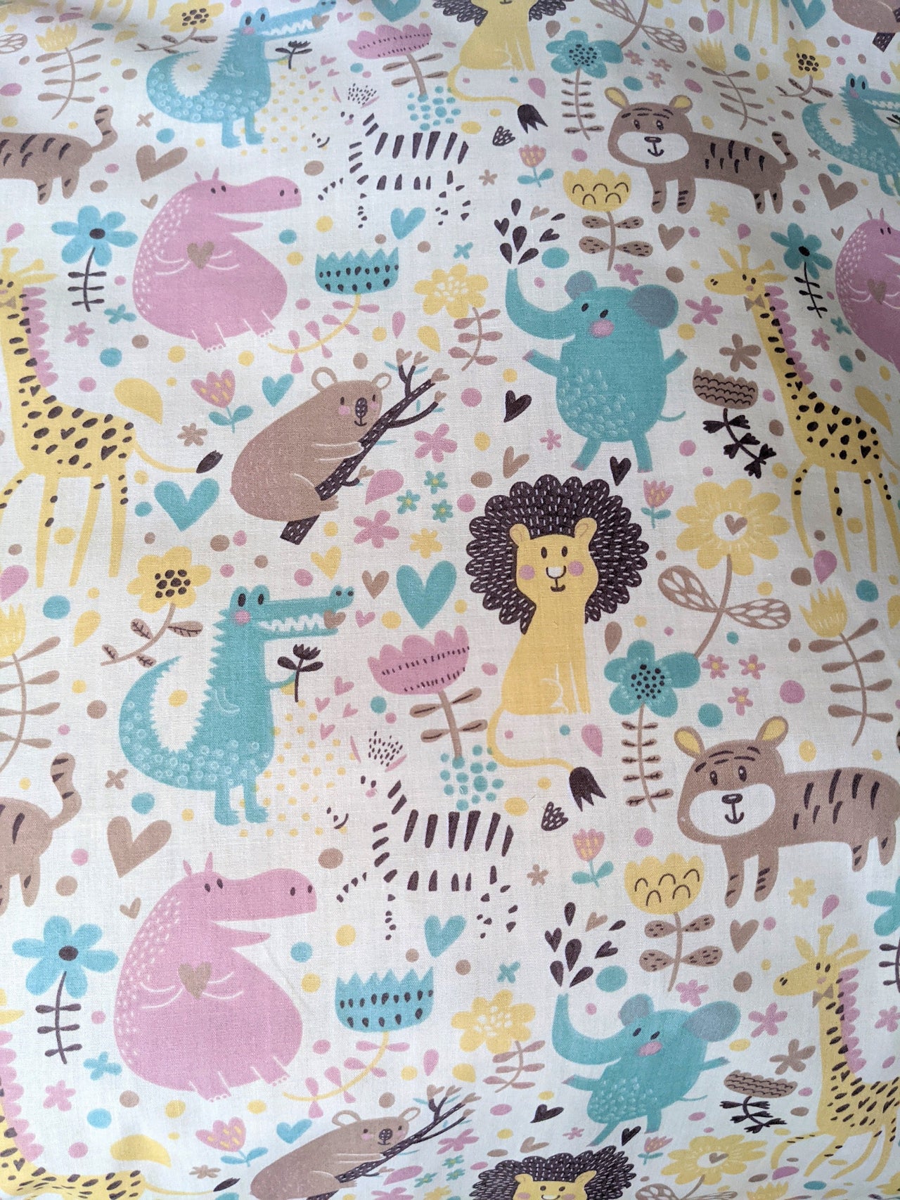 Jungle Animal Fabric, Polycotton Fabric, Love Animals Forest Fabric Sewing Fabric Nursery Fabric Quilting Craft Fabric by Half metre / metre