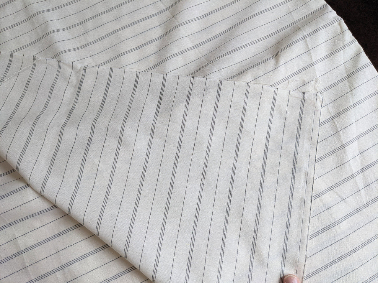 Off White Cotton Stripes Fabric, Striped Handloom Fabric, Quilting Fabric