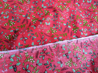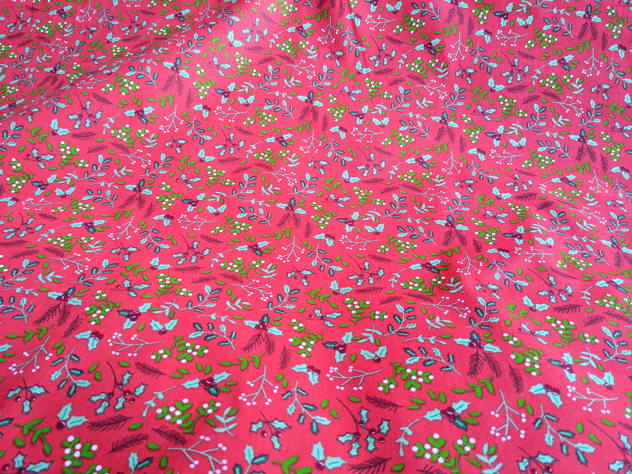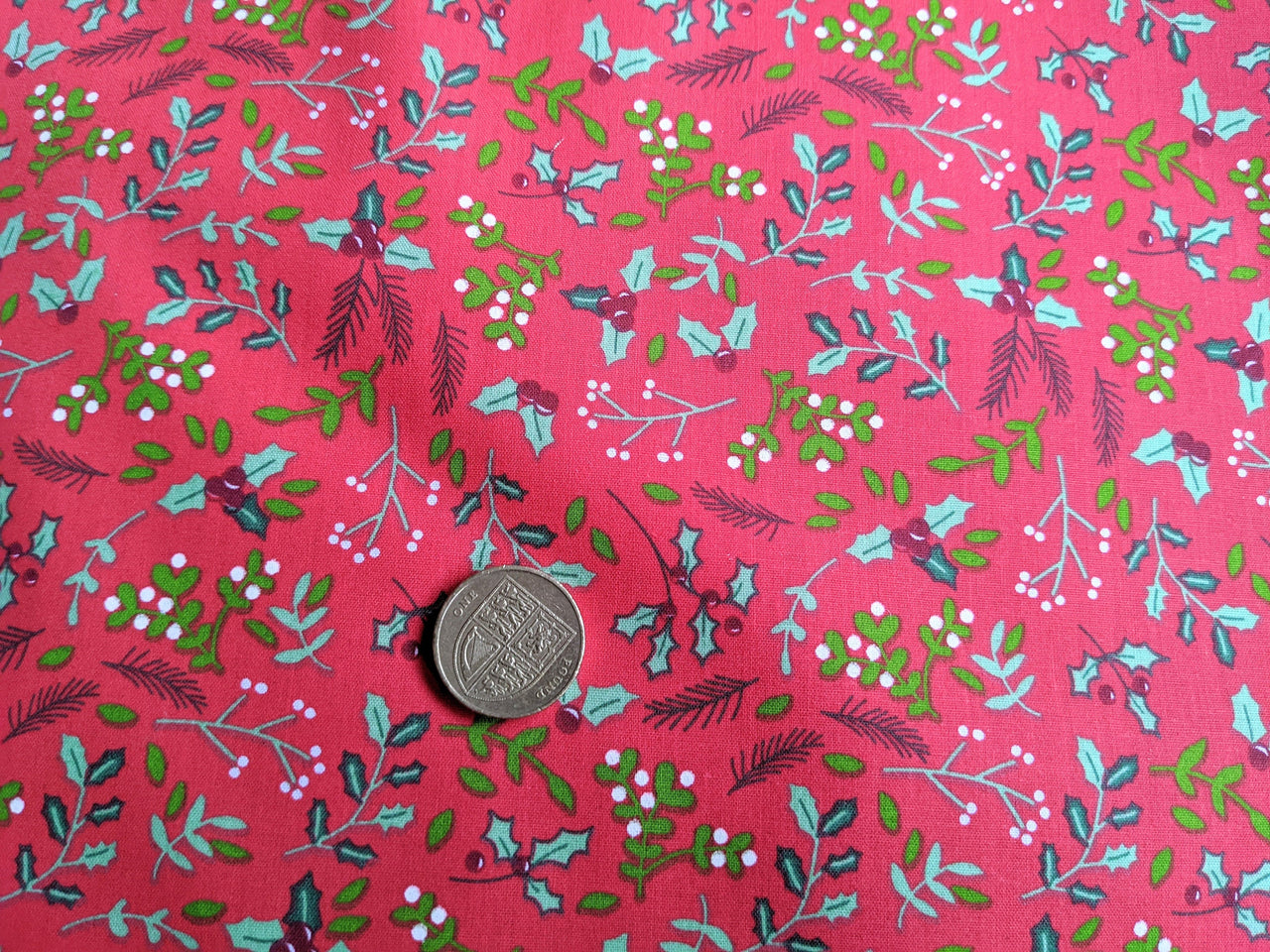 Red Sally Polycotton Holly Leaves Christmas Fabric, Festive Fabric, Holiday Fabric