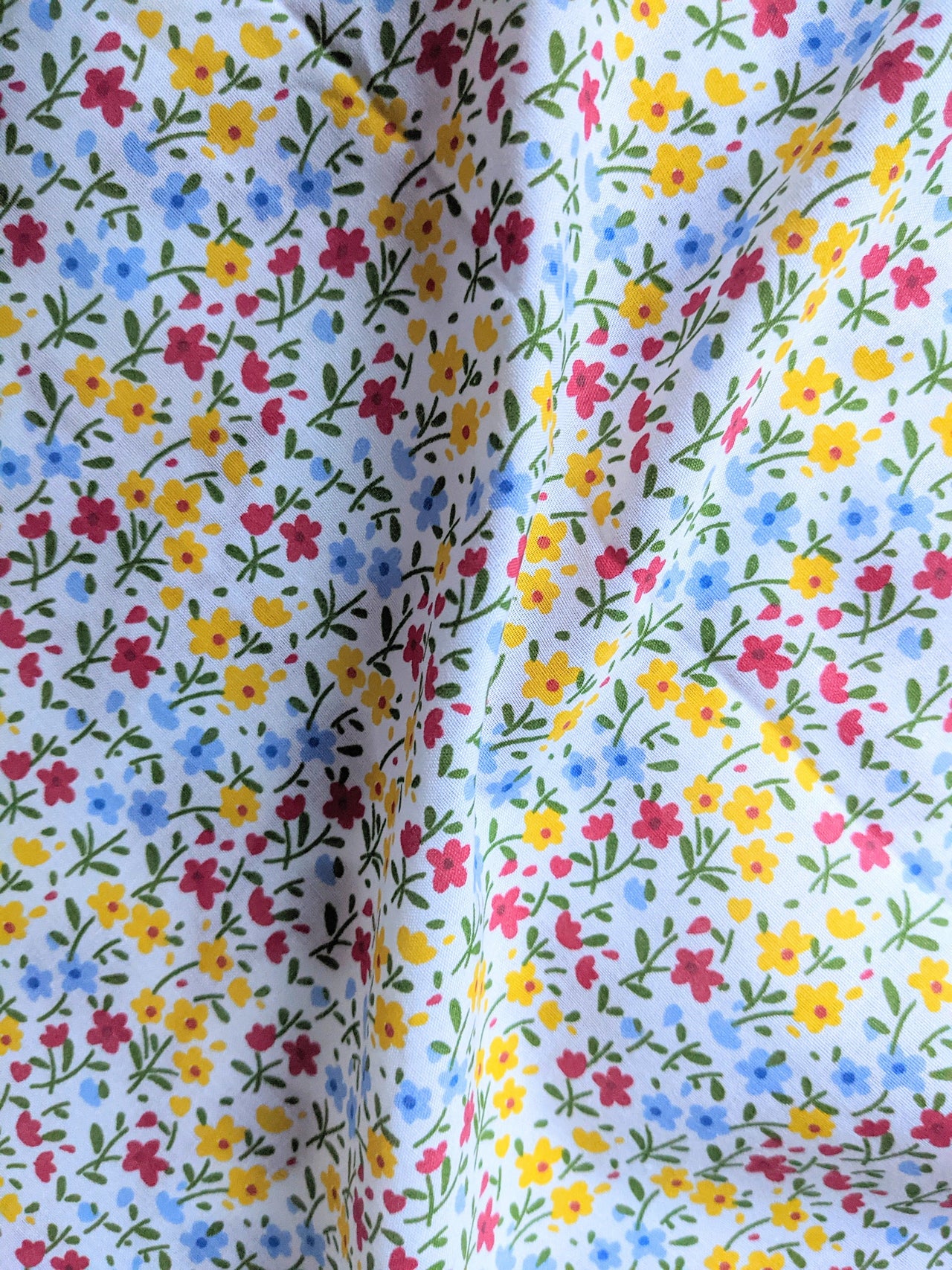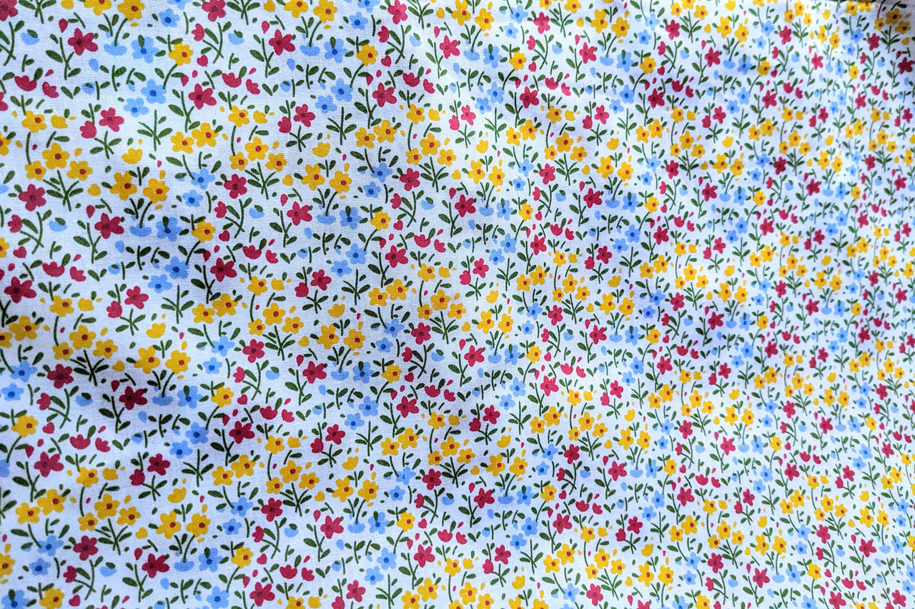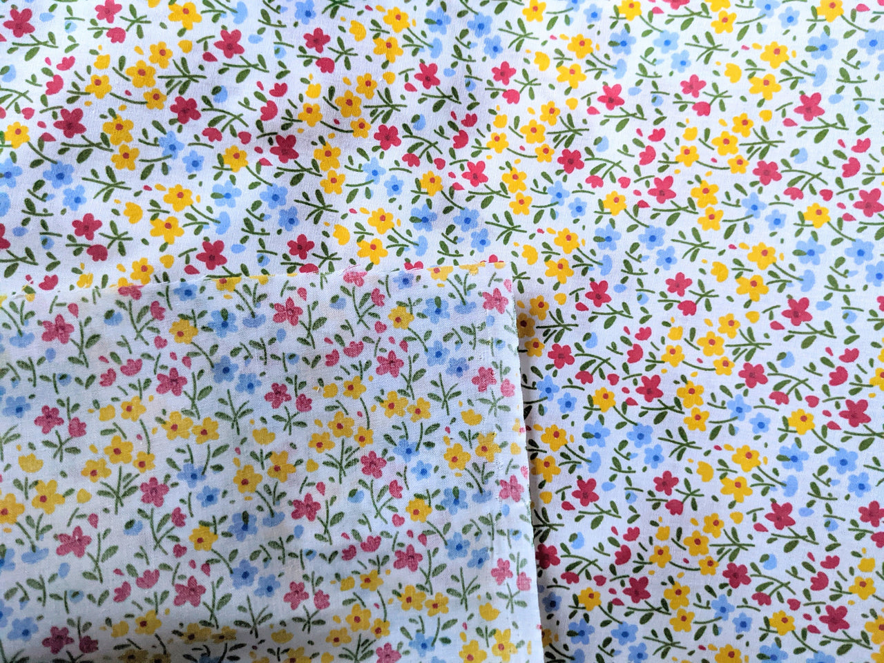 Yellow And Red Poly Cotton Flower Garden Fabric, Floral Fabric, Small Print Fabric Small Flower Fabric Fabric Quilting Fabric