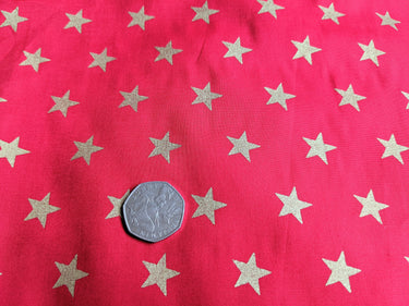 This is a stunning pinspots star pattern fabric. A beautiful Xmas Cotton with a festive metallic gold star design. Perfect for all things Christmas including crafting, homeware and decorations.