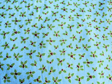 This is a fabric made from a blend of polyester and cotton, popularly combined to make clothing, bed sheets and pillow cases. Printed with a festive design featuring a floral holly leaf design.