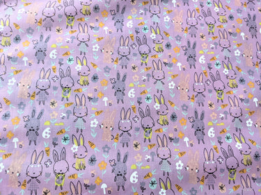 Lilac Purple Sally Polycotton Spring Bunny Rabbit Easter Fabric, Festive Fabric, Holiday Fabric, Sewing Fabric