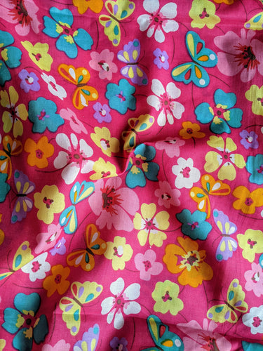 Pink Cotton Voile Floral Butterfly Fabric, Floral Print Fabric, Lightweight Pink Fabric, Spring And Summer Fabric