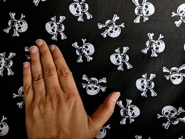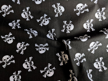 Black Pirate Skull And Crossbones Polycotton Halloween Fabric.
