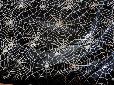 Black And Silver Halloween Spider's Web Foil Fabric.