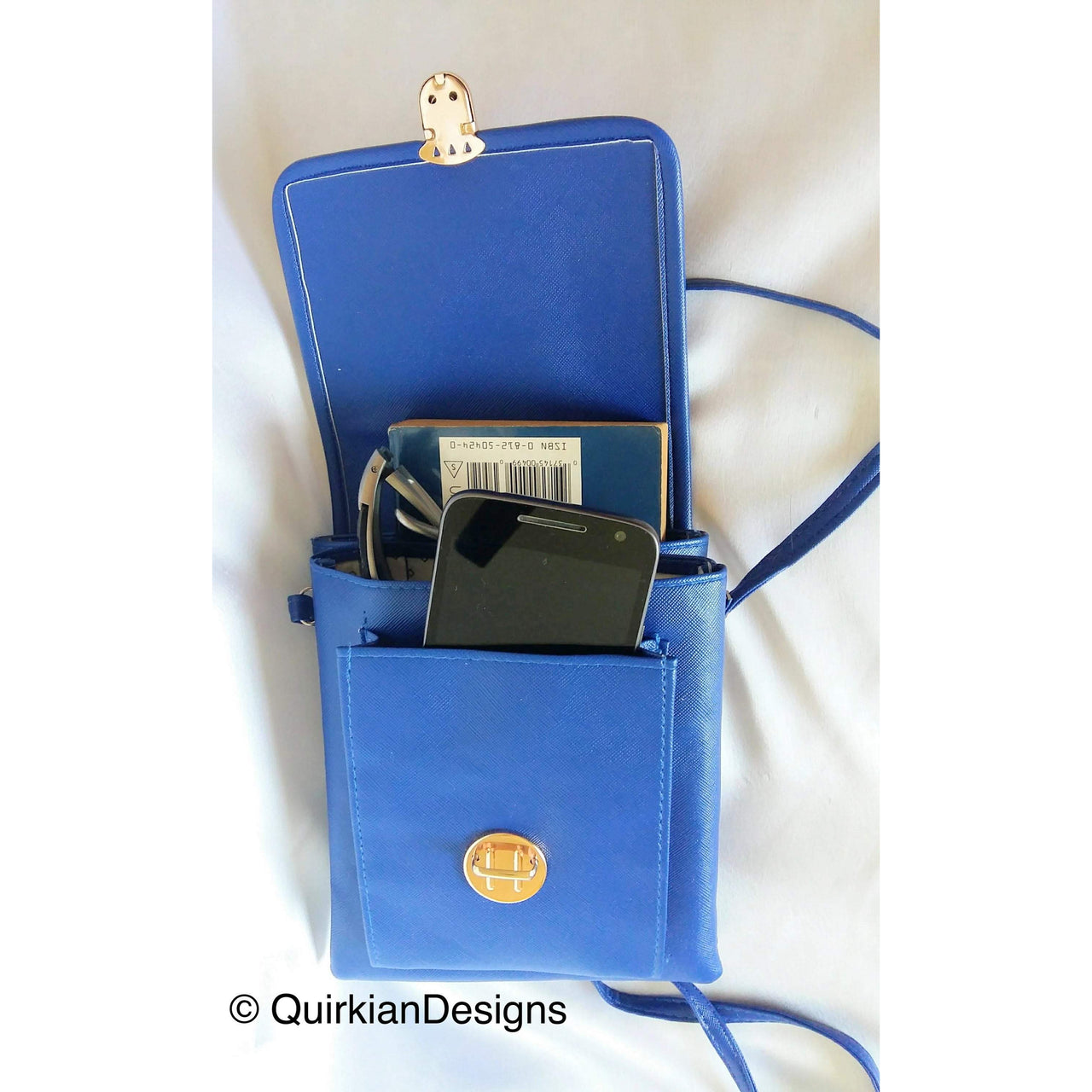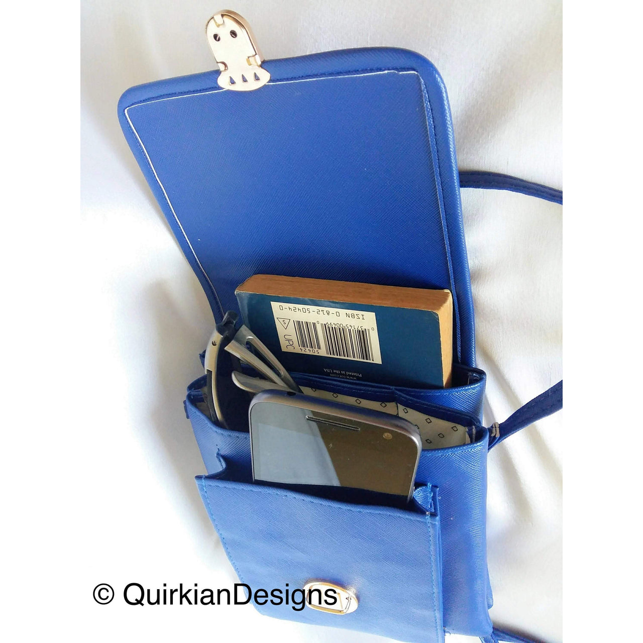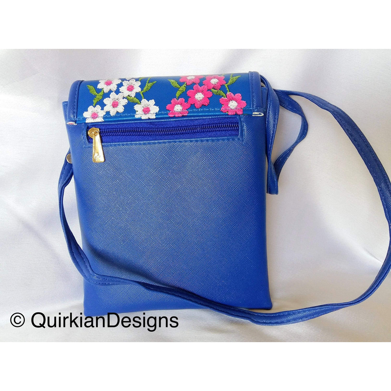 Blue Fake Leather Bag With Pink, Green And White Floral Embroidery Design, Day Clutch, Shopping Crossbody Sling Purse, Faux Leather Bag