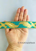 The embroidery on this trim is called Zardozi, an exclusive type of embroidery that is done by hand. Zardozi comes from two Persian words: zar or zarin meaning 'gold', and dozi meaning 'sewing'. Zardozi is a type of heavy and elaborate metal embroidery on a silk, satin, or velvet fabric base.