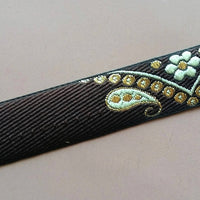 Brown, Beige And Gold Embroidered Trim, Paisley And Floral Embroidery