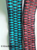 The embroidery on this trim is called Zardozi, an exclusive type of embroidery that is done by hand. Zardozi comes from two Persian words: zar or zarin meaning 'gold', and dozi meaning 'sewing'. Zardozi is a type of heavy and elaborate metal embroidery on a silk, satin, or velvet fabric base.