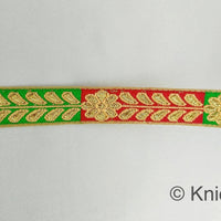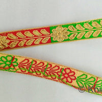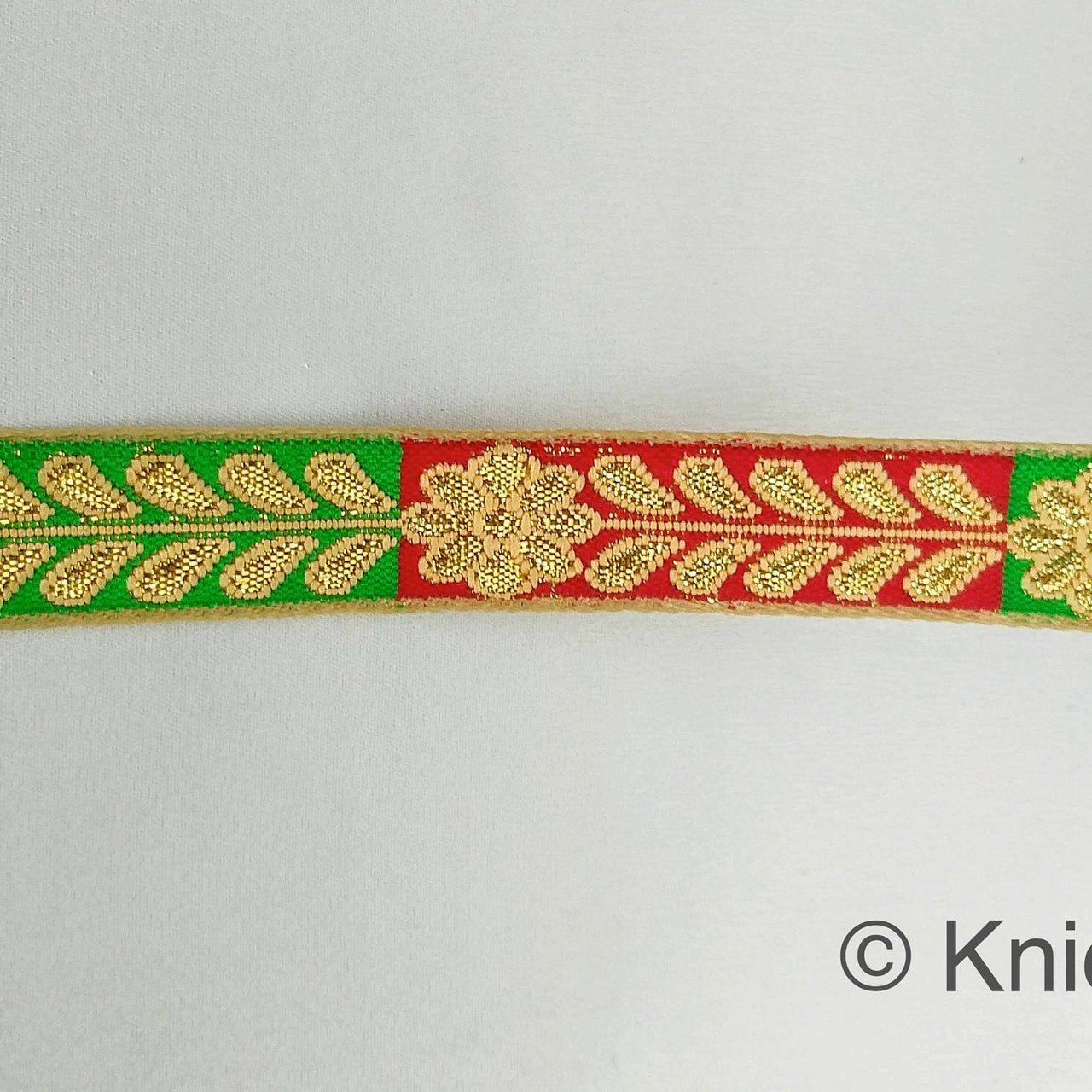 Floral Jacquard Trim Decorative Trim Fashion Trim, Ribbon Sash, Indian Trim, Gold Brocade Weave, Green And Red Trim.