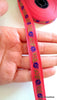 The embroidery on this trim is called Zardozi, an exclusive type of embroidery that is done by hand. Zardozi comes from two Persian words: zar or zarin meaning 'gold', and dozi meaning 'sewing'. Zardozi is a type of heavy and elaborate metal embroidery on a silk, satin, or velvet fabric base.