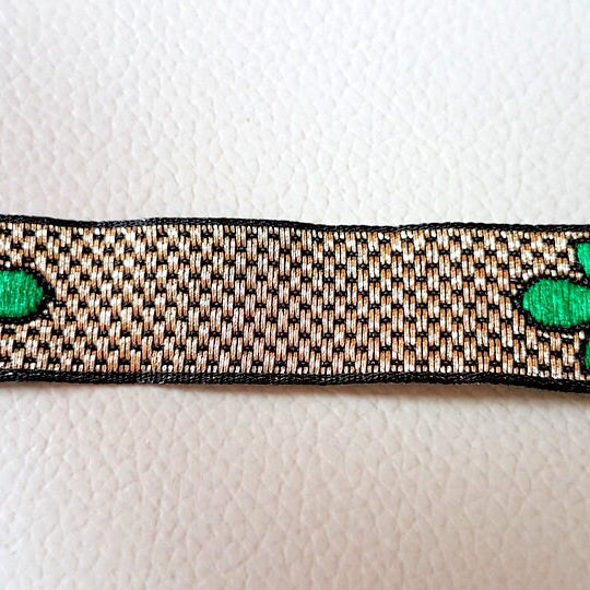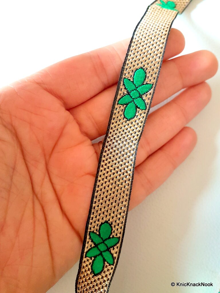 Green, Gold And Black Thread Floral Lace Trim, Approx. 15mm wide - 140316L94