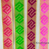 The embroidery on this trim is called Zardozi, an exclusive type of embroidery that is done by hand. Zardozi comes from two Persian words: zar or zarin meaning 'gold', and dozi meaning 'sewing'. Zardozi is a type of heavy and elaborate metal embroidery on a silk, satin, or velvet fabric base.