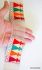 Jacquard Red Woven Trim With Floral Embroidery, Yellow, Blue