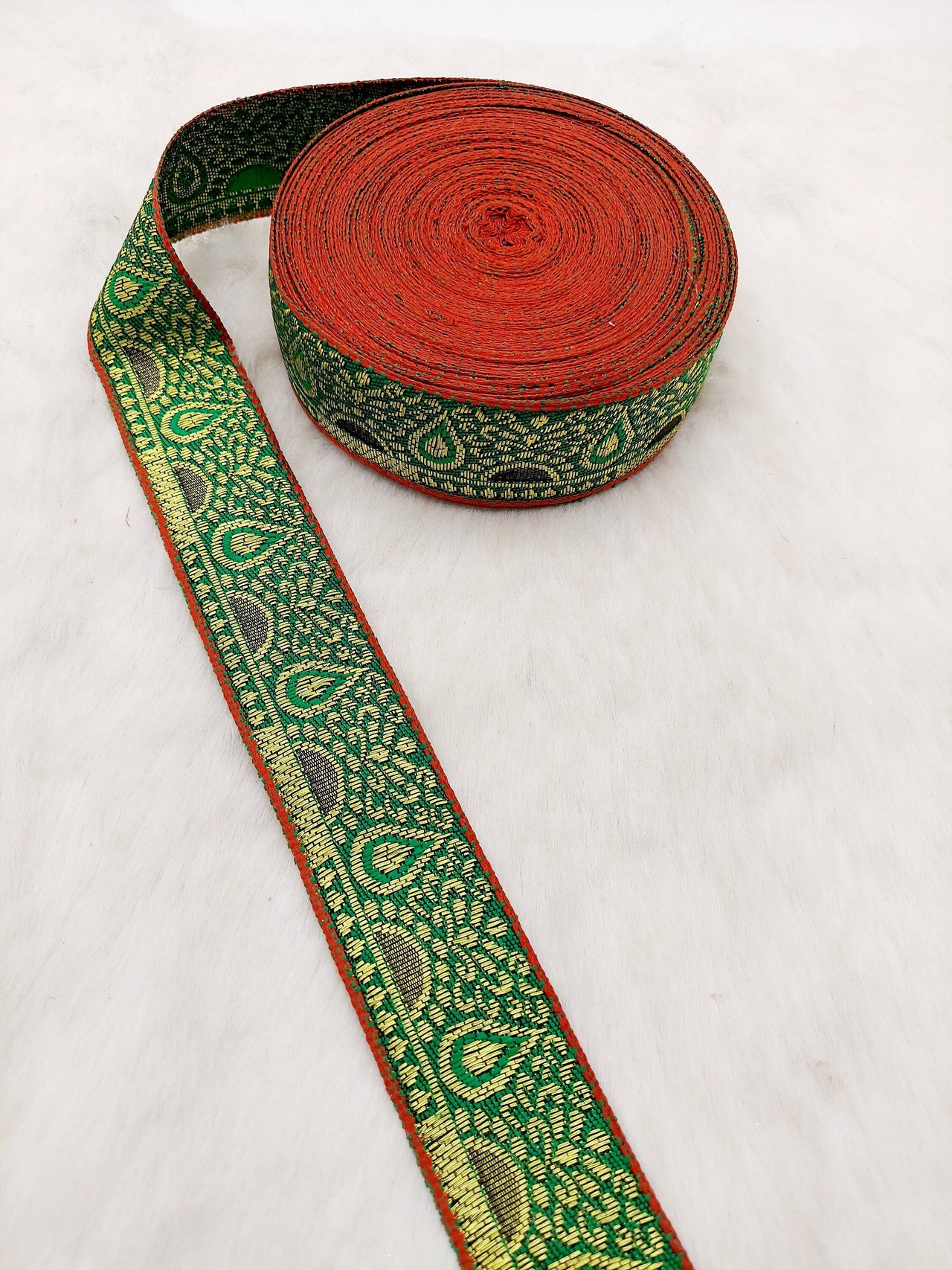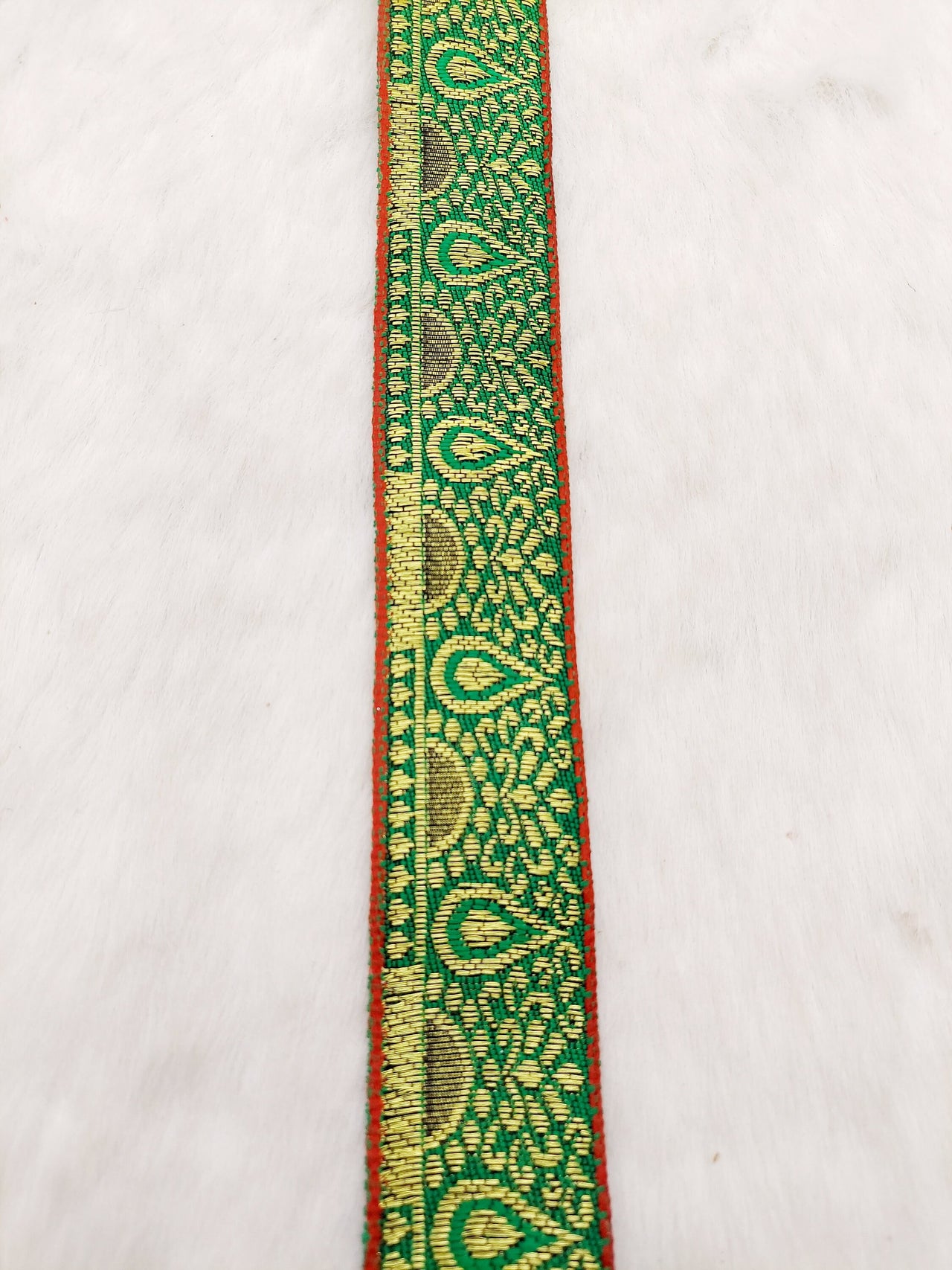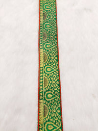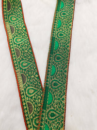 Jacquard Saree Border, Green And Gold Woven Thread Work Trim, Jacquard Trimming Decorative Trim