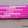 The embroidery on this trim is called Zardozi, an exclusive type of embroidery that is done by hand. Zardozi comes from two Persian words: zar or zarin meaning 'gold', and dozi meaning 'sewing'. Zardozi is a type of heavy and elaborate metal embroidery on a silk, satin, or velvet fabric base.