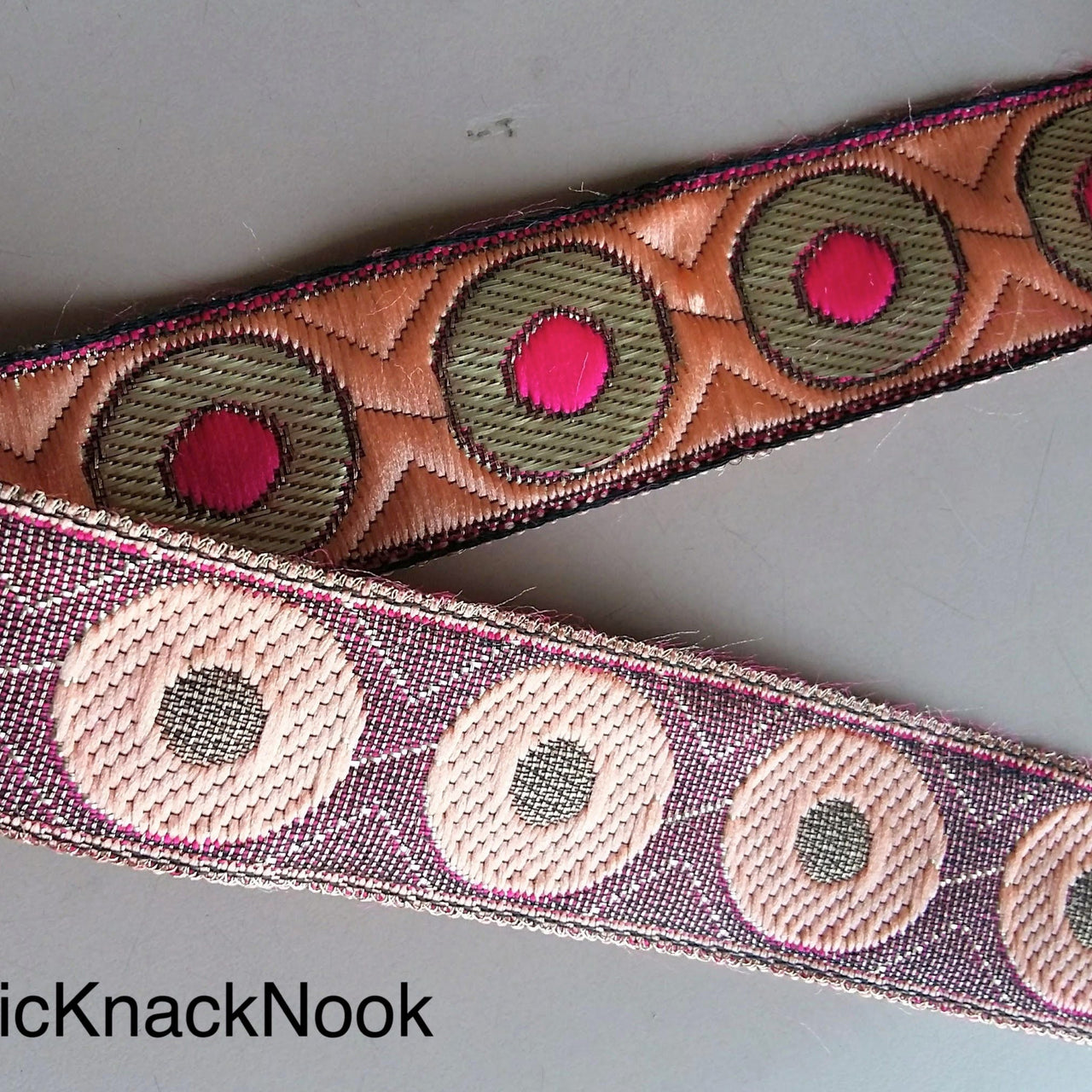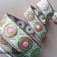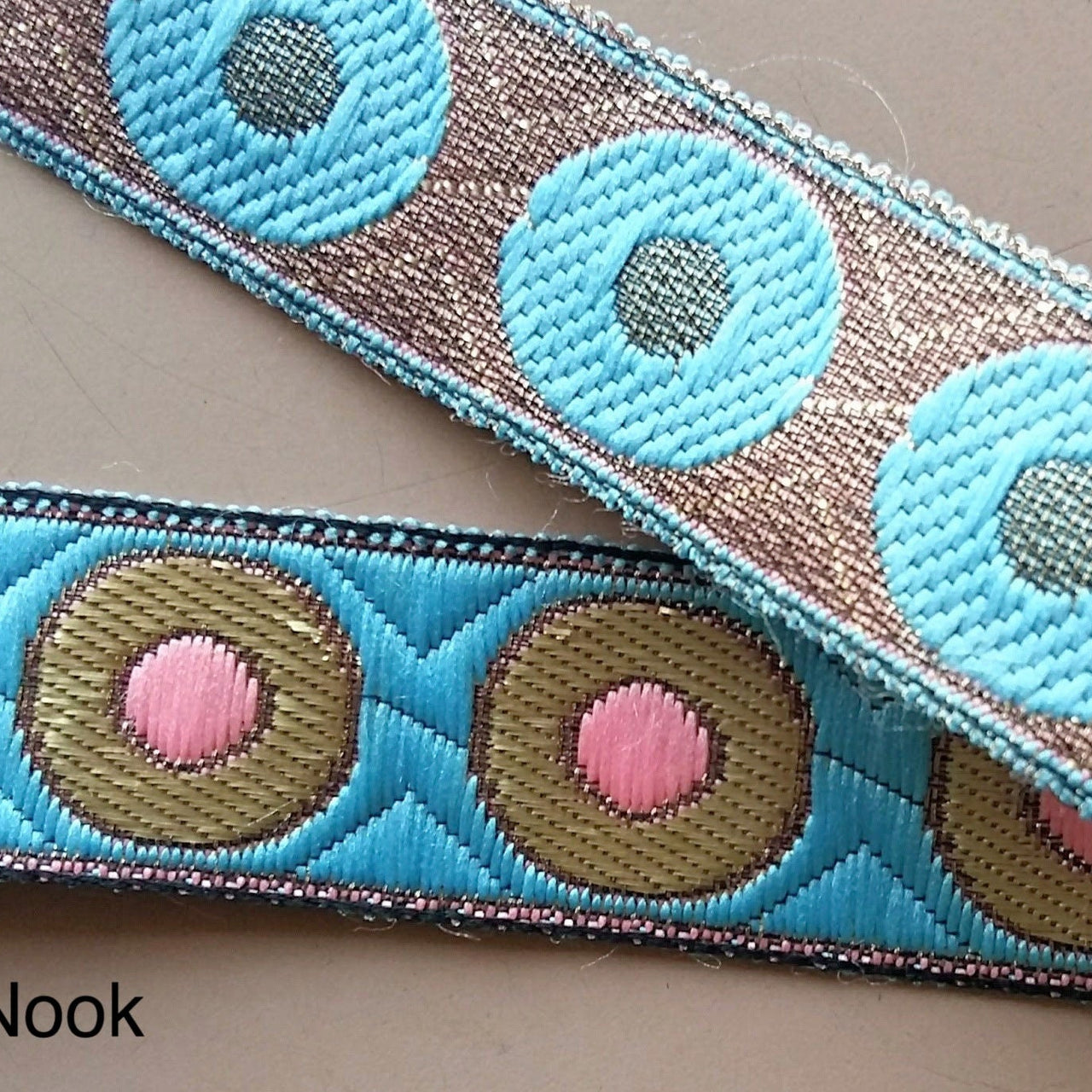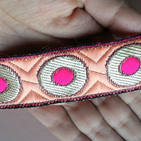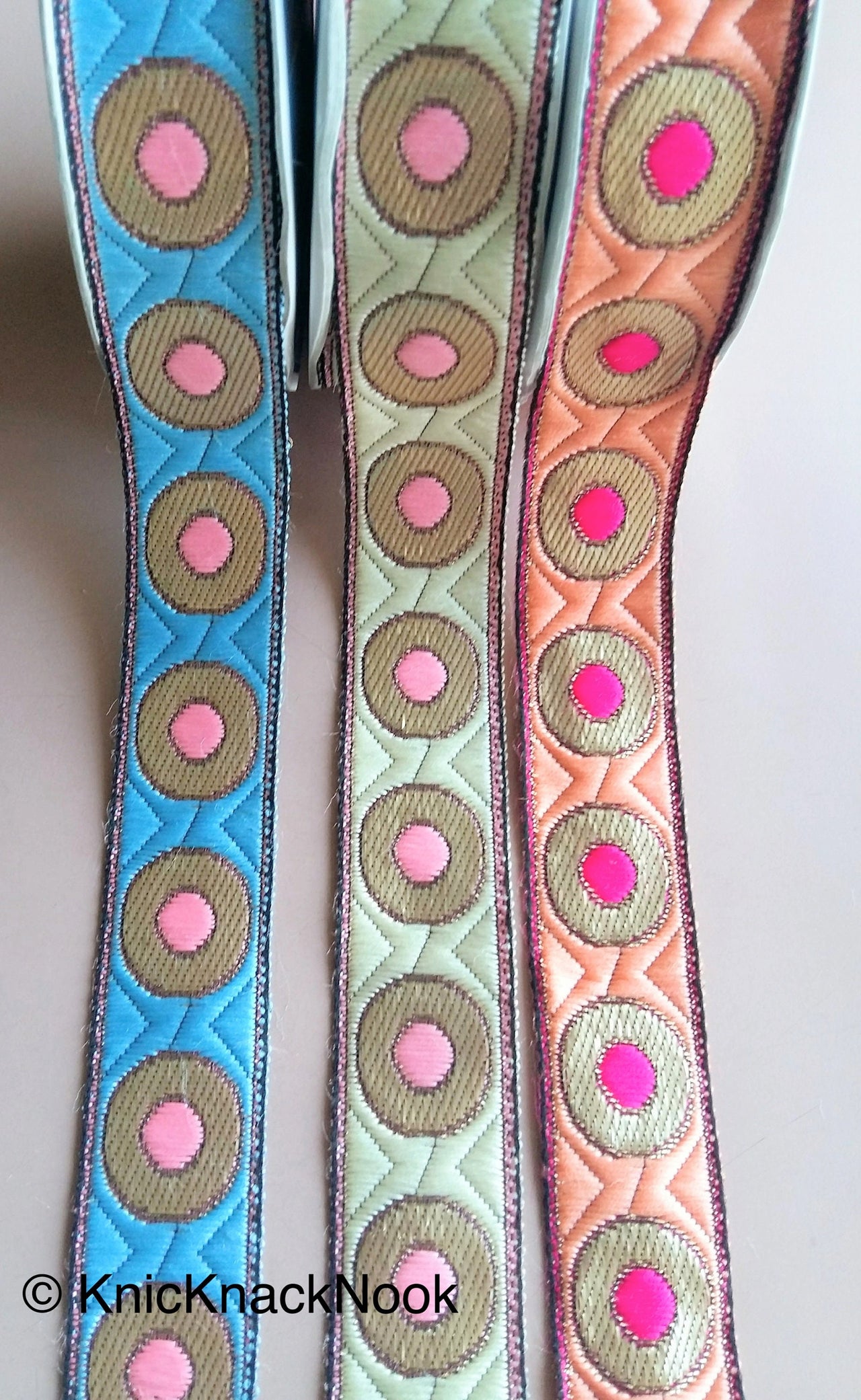 Orange / Blue / Beige Embroidered Trim with Gold and Pink Circle Pattern, Approx. 30mm Wide - 200317L409/10/11