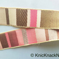 Pink, Beige And Antique Bronze Embroidered Lace Trim, Stripes Trim