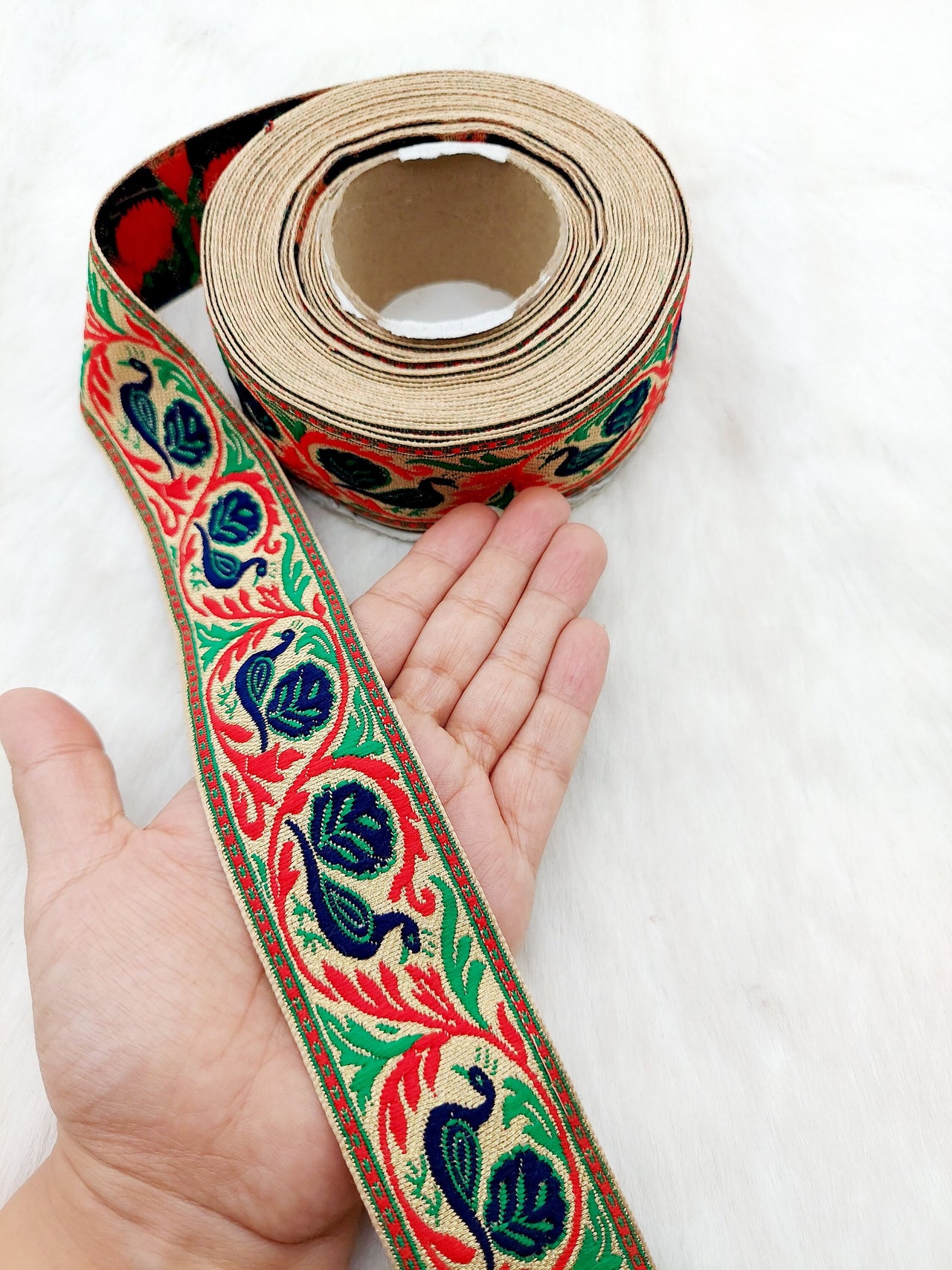 Polyester Jacquard Saree Border, Birds Woven Thread Work Trim, Jacquard Trimming Decorative Trim