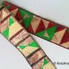 Purple / Fuchsia Pink, Green And Gold Embroidered Trim, Geometric Pattern