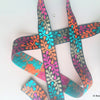 The embroidery on this trim is called Zardozi, an exclusive type of embroidery that is done by hand. Zardozi comes from two Persian words: zar or zarin meaning 'gold', and dozi meaning 'sewing'. Zardozi is a type of heavy and elaborate metal embroidery on a silk, satin, or velvet fabric base.