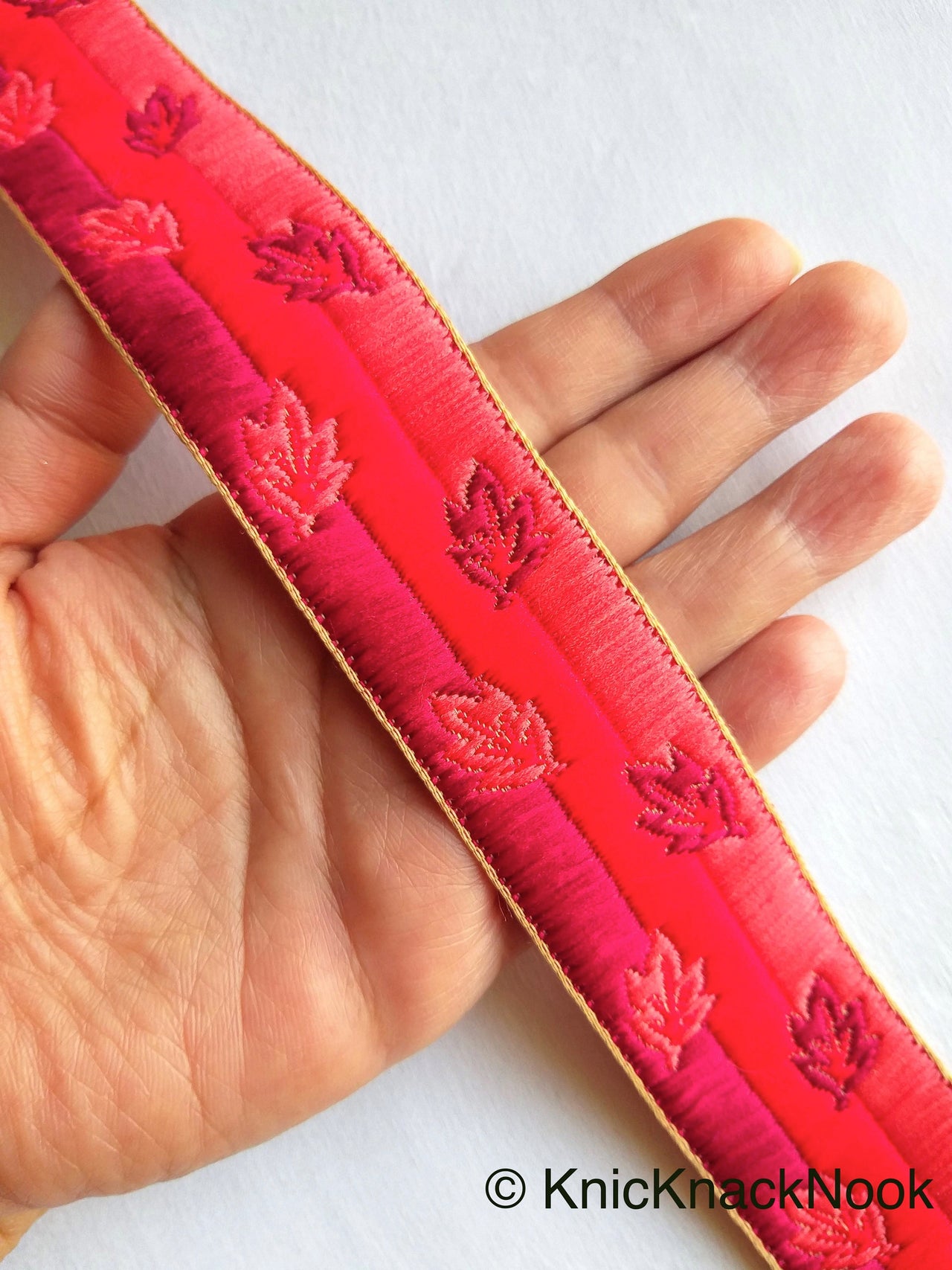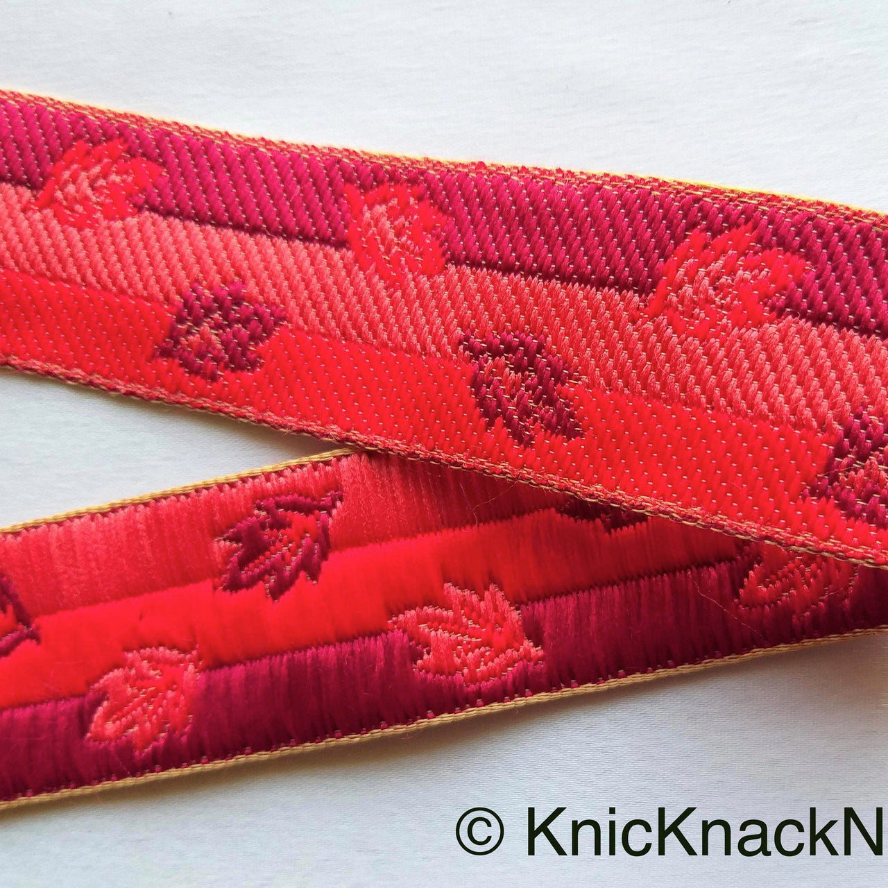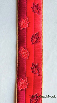 Red Embroidered Trim With Three Tones of Red Threads, Leaf Embroidery Trim, Approx. 34mm wide - 210119L43