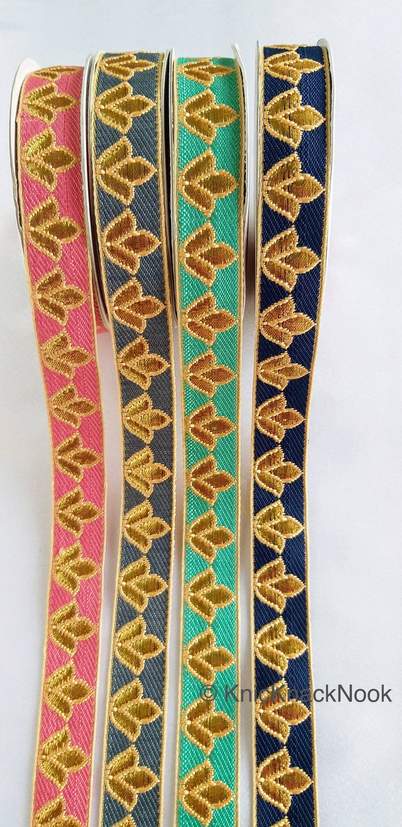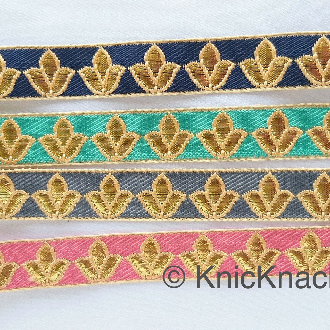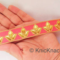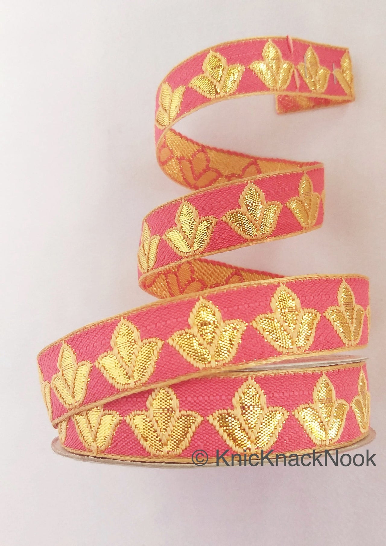 Salmon Pink and Gold Floral Jacquard Trim, Trim By 4 Yards, Craft Decorative Ribbon