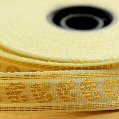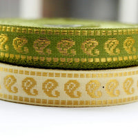 Wholesale Beige And Gold Silk Embroidery 9 Yards Lace Trim 15mm Wide Craft Ribbon, Fringing Tape, Paisley Ribbon Gifting Diwali Trimming