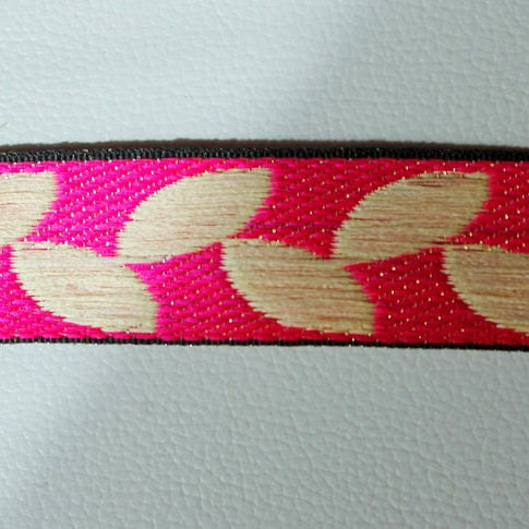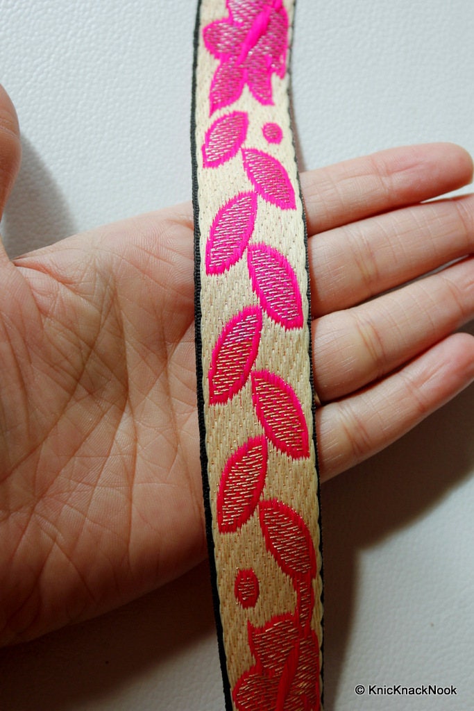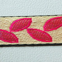 Wholesale Beige, Pink And White Floral And Leaves Jacquard Fabric Lace Trim, Approx. 25mm Wide