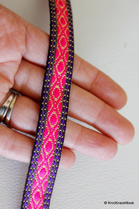 Wholesale Pink And Blue Thread Weave Jacquard Trim By 9 Yards Lace Trim, Approx. 17mm Wide, Jacquard Trimming GiftWrap Ribbon