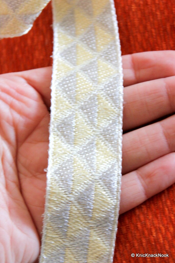 Wholesale Silver And Beige Woven Jacquard Trim, Approx. 32 mm Trim By 9 Yards Costume Trim Sari Border, Indian Craft Ribbon