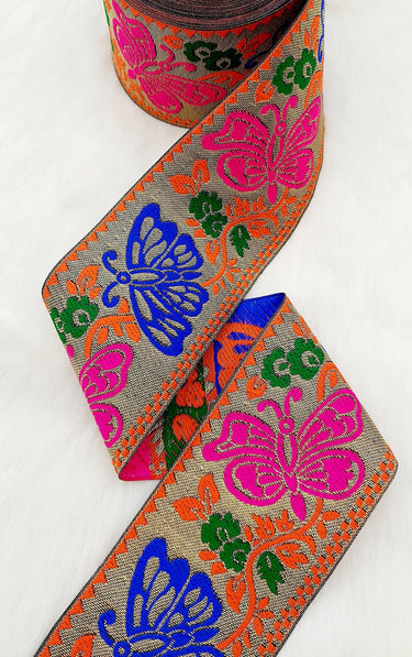 This listing is for a lovely Floral Jacquard Saree Border, Woven Thread Work Trim, Jacquard Trimming Decorative Trim, Crafting Ribbon, Trim by 2 Yards