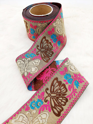 This listing is for a lovely 9 Yards Antique Gold Jacquard Brocade Sari Border Trim, Indian Woven Ribbon, Butterfly Trim, Decorative Trim.