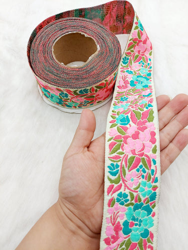 This listing is for a lovely Floral Jacquard Saree Border, Woven Thread Work Trim, Jacquard Trimming Decorative Trim, Crafting Ribbon, Trim by 9 Yards