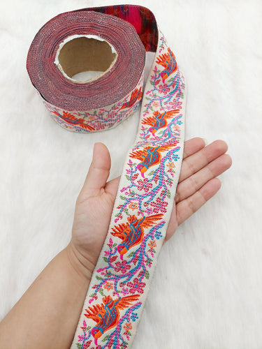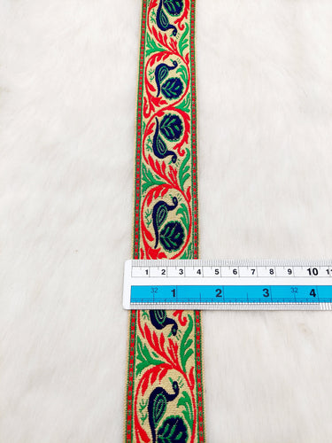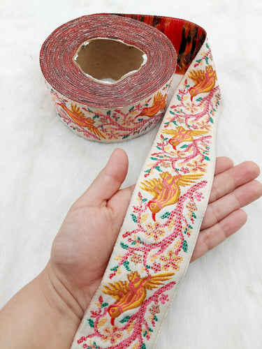 This listing is for a lovely Jacquard Saree Border, Birds Woven Thread Work Trim, Jacquard Trimming Decorative Trim, Crafting Ribbon, Trim by 9 Yards