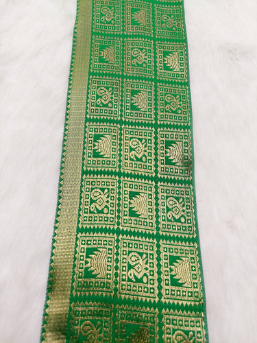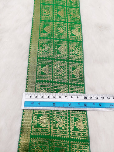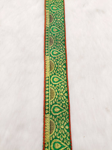 This listing is for a lovely Jacquard Saree Border, Green And Gold Woven Thread Work Trim, Jacquard Trimming Decorative Trim, Crafting Ribbon, Trim by Yard