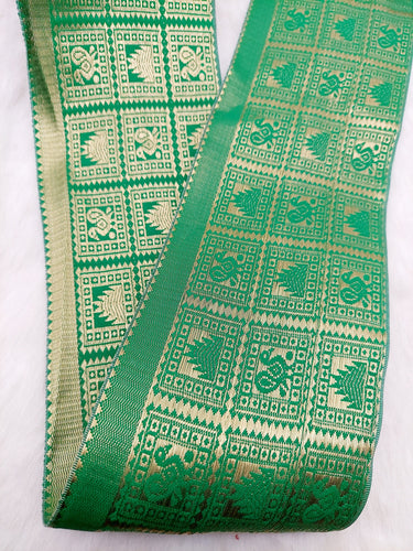 This listing is for a lovely Jacquard Saree Border, Green And Gold Woven Thread Work Trim, Jacquard Trimming Decorative Trim, Crafting Ribbon, Trim by 5 Yards