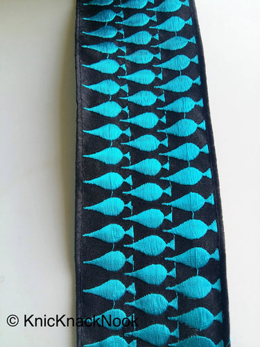 This listing is for a lovely Black Fabric Trim With Blue / Purple Leaf Embroidery One Yard Lace Trim.